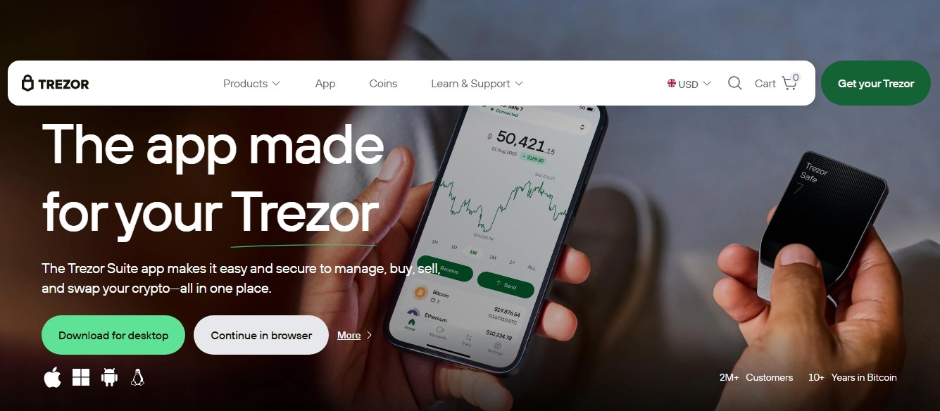 The Trezor Suite App is designed to complement the security of the Trezor hardware wallet. Some of its key security features include: